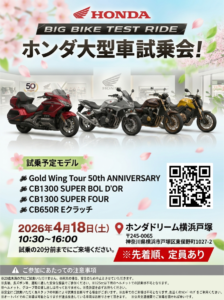 ホンダの大型車両に乗れる試乗会開催!3/29(日)ホンダドリーム新横浜